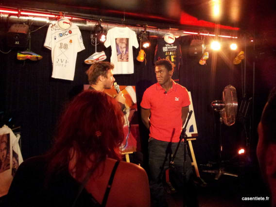Luc Abalo !! Si je connais Luc Abalo !! Ben oui et vous ? Cet handballeur de l’équipe de France qui joue avec Nicola Karabatic et Thierry Omeyer. Ce beau gosse sportif nous présente pudiquement ses oeuvres. Parce que vous ne le savez peut-être pas (moi non plus d’ailleurs, je ne le savais pas avant hier soir…), Luc Abalo a fait une prépa de 3 ans pour rentrer aux Beaux Arts avant de plonger dans le monde pro du handball. Mais, depuis le temps, Luc n’a pas laché ses pinceaux…